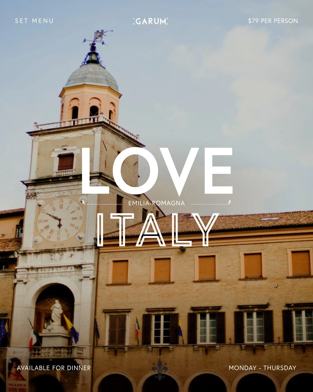 The regions of Italy are diverse in their landscapes, people and food. Each has a rich history and culture that weaves through daily life, shaping each region into a vastly different one from its neighbour. In celebration of their beauty, we explore each of these regions through our Love Italy menu.